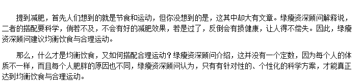 提到減肥,首先人們想到的就是節(jié)食和運(yùn)動,但你沒想到的是,這其中卻大有文章。綠瘦資深顧問解釋說,二者的搭配要科學(xué),倘若不及,不會有......