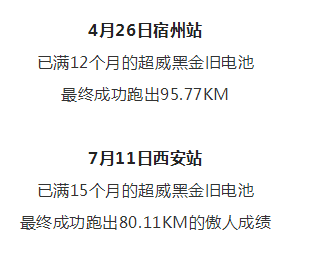 4月26日宿州站 已滿12個(gè)月的超威黑金舊電池 最終成功跑出95.77KM 7月11日西安站 已滿15個(gè)月的超威黑金舊電......