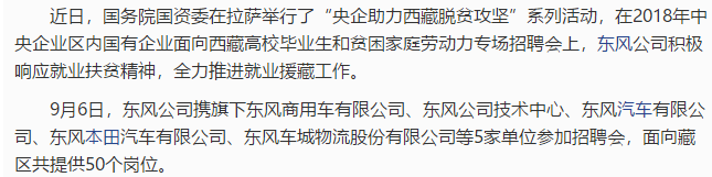 近日,國務院國資委在拉薩舉行了“央企助力西藏脫貧攻堅”系列活動,在2018年中央企業(yè)區(qū)內國有企業(yè)面向西藏高校畢業(yè)生和貧困家庭勞動......