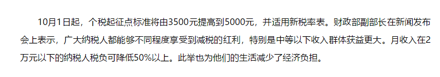10月1日起,個(gè)稅起征點(diǎn)標(biāo)準(zhǔn)將由3500元提高到5000元,并適用新稅率表。財(cái)政部副部長在新聞發(fā)布會上表示,廣大納稅人都能夠不同......
