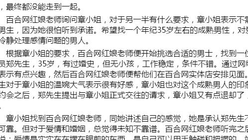 27歲的章小姐之所以來(lái)到百合網(wǎng)實(shí)體店,就是因?yàn)樗杏X(jué)自己已經(jīng)不懂愛(ài)情,甚至是不敢去愛(ài)了,渴望同百合網(wǎng)的愛(ài)情顧問(wèn)好好聊聊,然后找到......