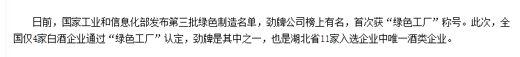 日前,國家工業(yè)和信息化部發(fā)布第三批綠色制造名單,勁牌公司榜上有名,首次獲“綠色工廠”稱號。此次,全國僅4家白酒企業(yè)通過“綠色工廠......