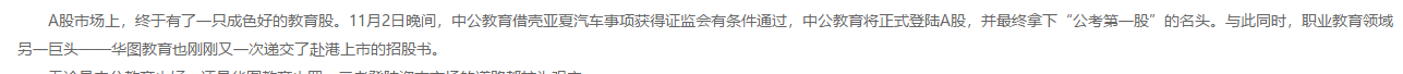 在華圖教育正忙于在香港進行H股的發(fā)行審核和路演之際,國內(nèi)職業(yè)教育培訓(xùn)的另一家寡頭公司中公教育在資本市場也突然按下了“快進鍵”?!?.....