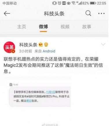榮耀Magic2正式發(fā)布媒體為何收到聯(lián)想Z5Pro邀請短信