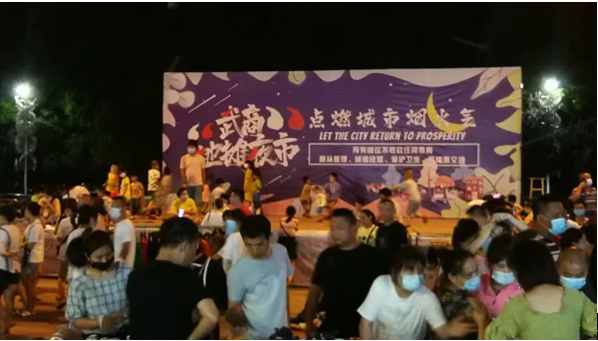 武商集團各大購物中心和超市門店搶抓機遇,主動出擊,豐富營銷模式,紛紛在門前廣場搭建展臺,擺放各式商品,以688集市、網(wǎng)紅夜市、深夜食堂等多種方式,豐富市民消費選擇,提振消費信心,全面打造夜市經(jīng)濟。